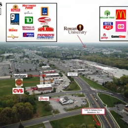 For sale: an 8.6-acre retail and office site featuring a 26,620-square-foot one-story commercial building. Located just one mile from Rowan University (19,465 students enrolled), this property offers strong visibility and strong demand potential.