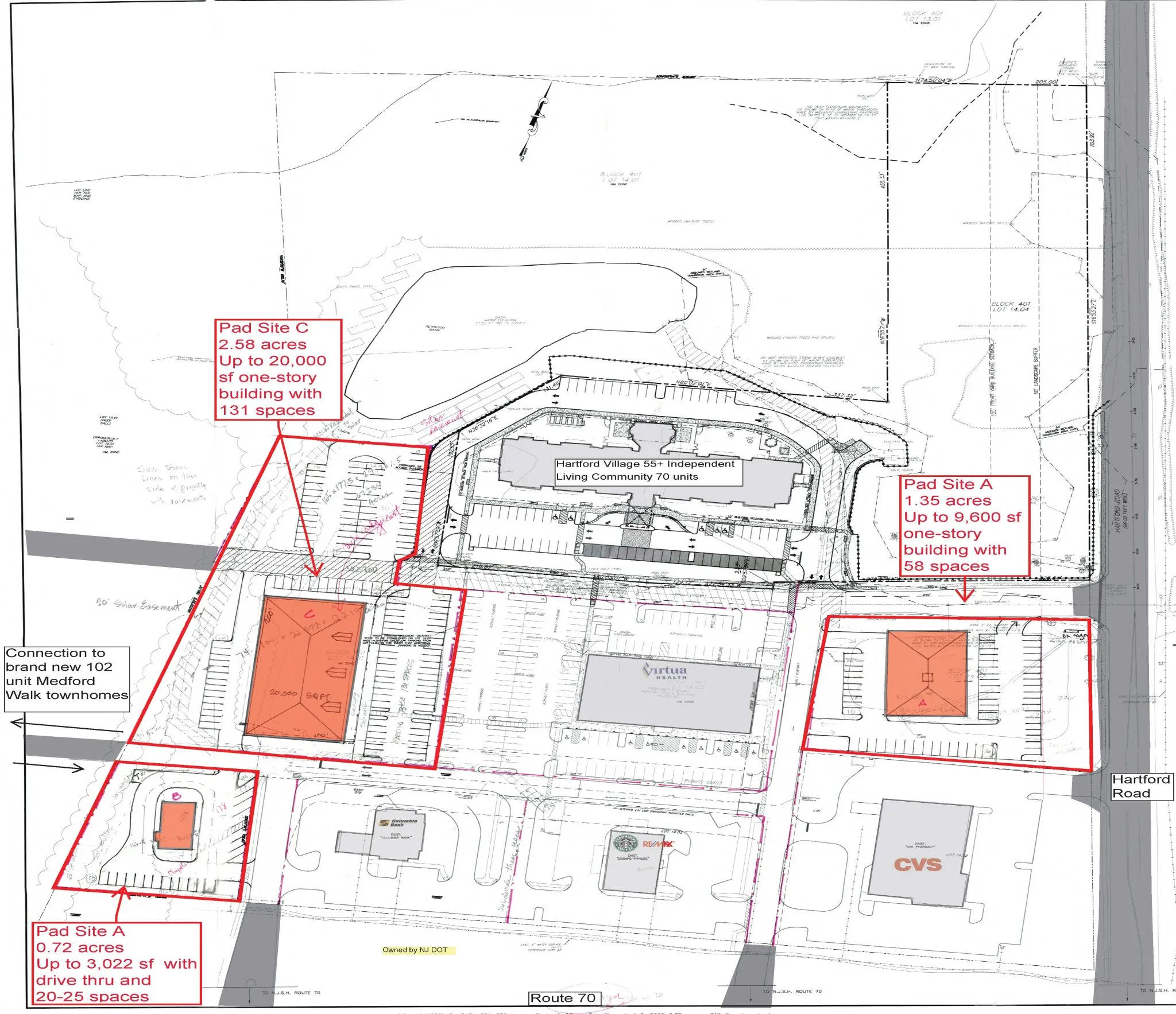 In addition to the existing shopping center, the project offers three pad site opportunities: