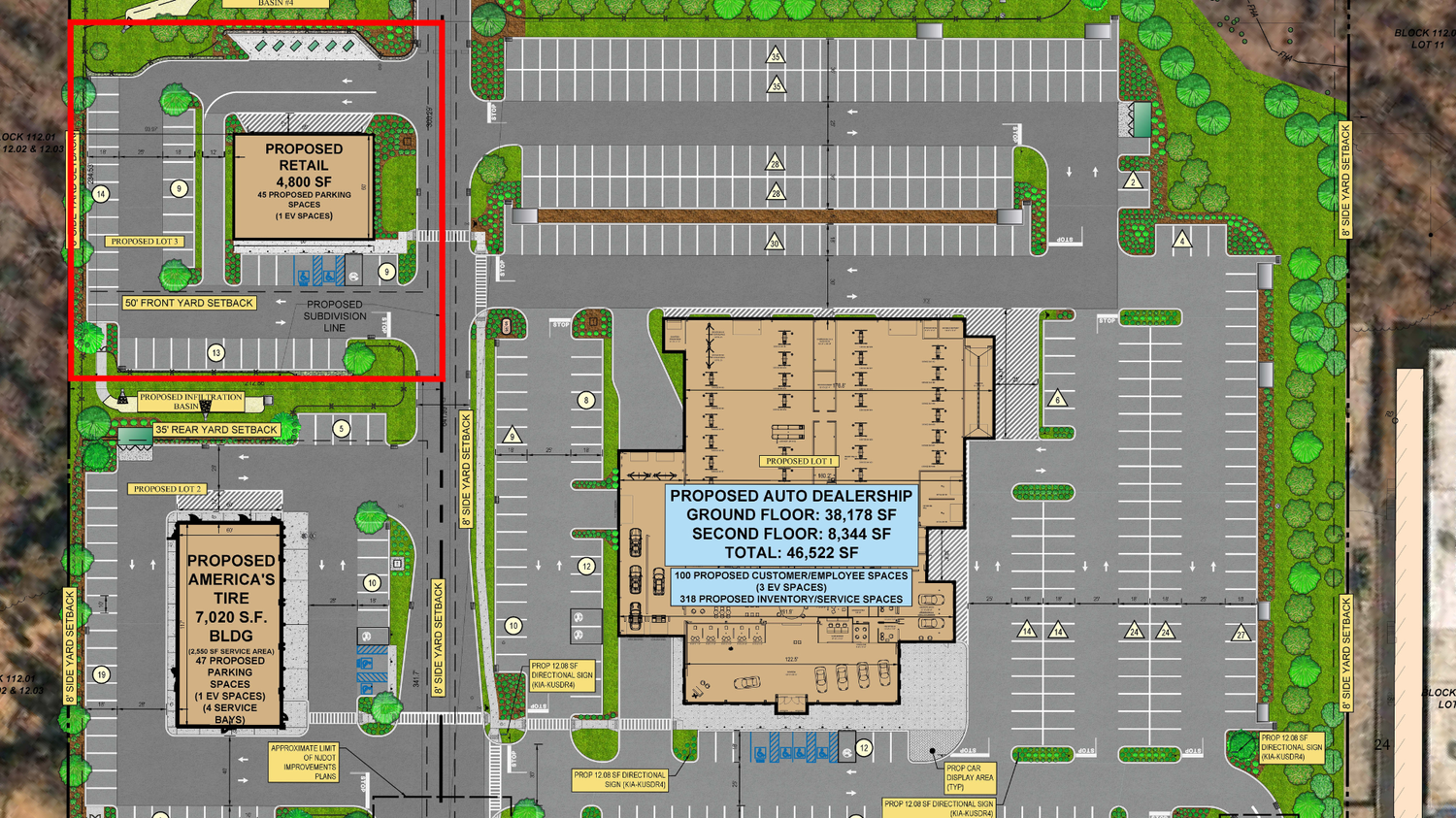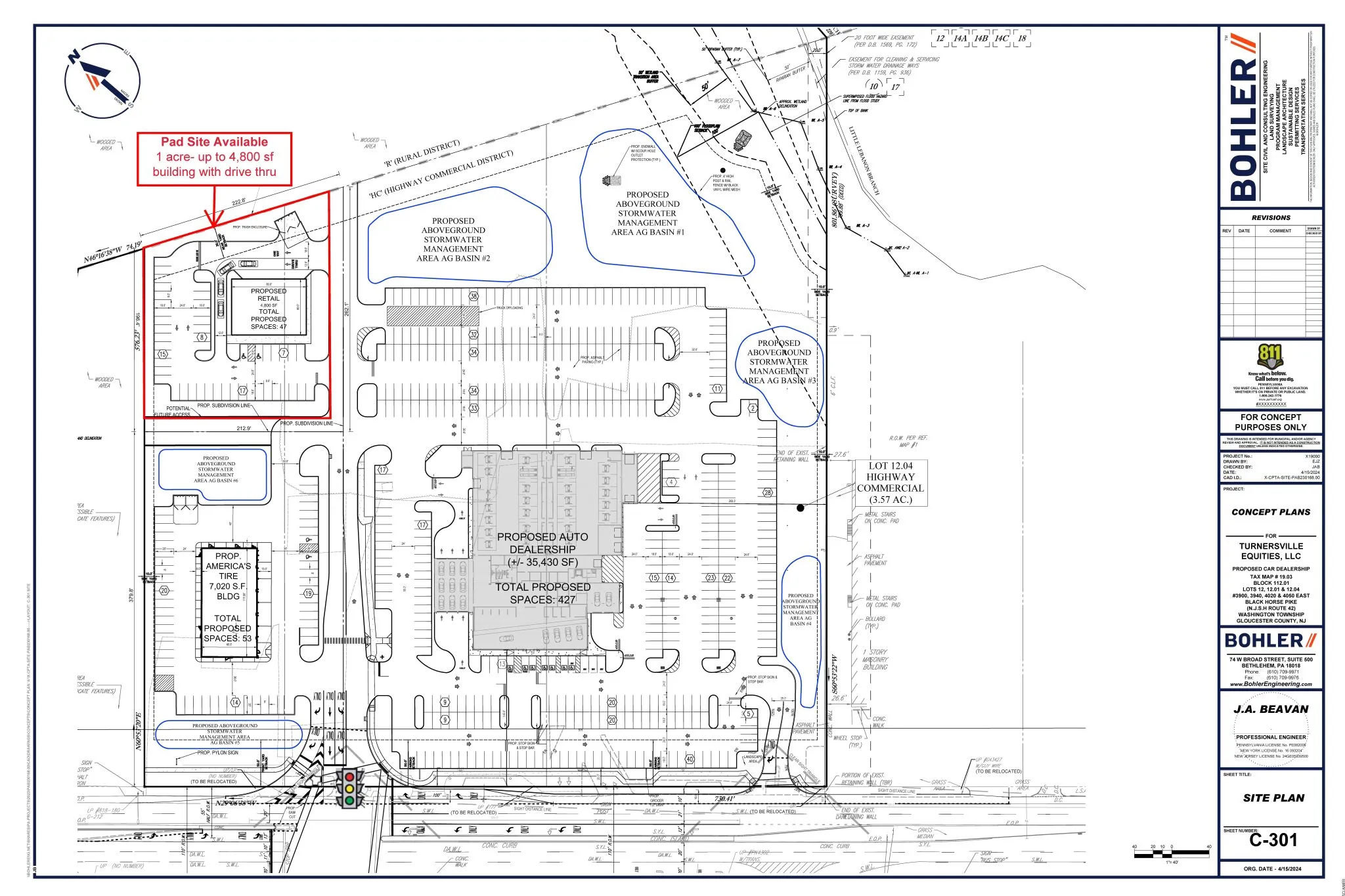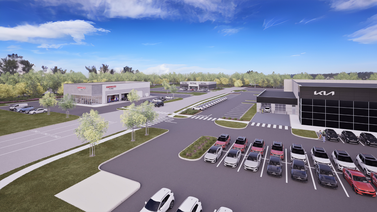 Additional land opportunities include 9 acres behind Lot 1 with retail use variance approved, 2.8 acres of Highway Commercial land, and 7.87 acres of Residential land with the ability to assemble. Tenants and neighbors include America’s Tire and a Kia Auto Dealership, further enhancing the property’s visibility and strengthening its position as a high-profile retail destination in South Jersey.